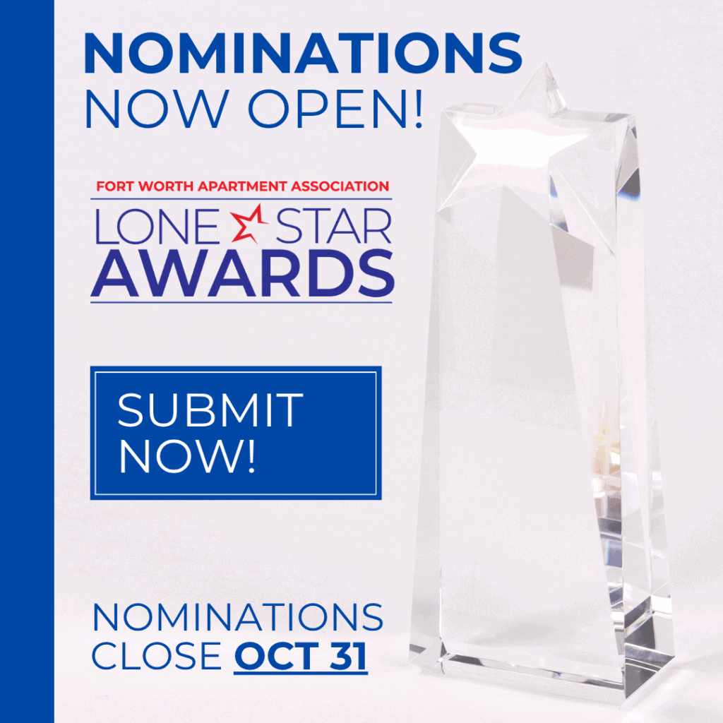 Nominations Are Now Open for the upcoming Lone Star Awards in January. FWAA’s multifamily industry award show was the first of its kind in the D/FW area. All members are encouraged to nominate deserving recipients of these prestigious awards.